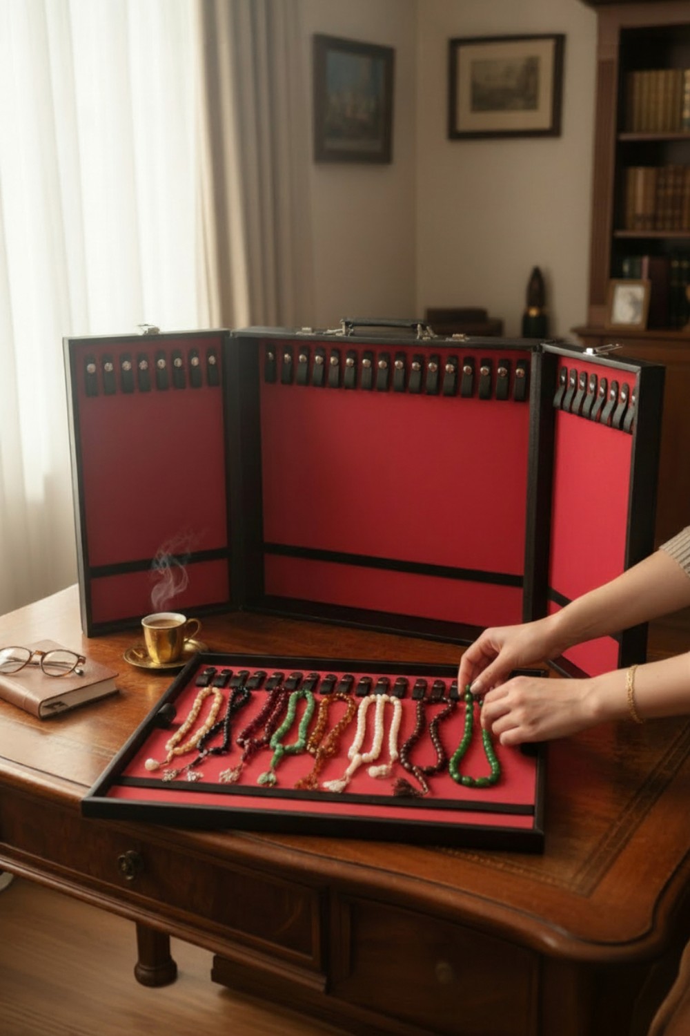 إذا كنت تملك مجموعة مسابيح وتبحث عن طريقة أنيقة تحفظها وتعرضها بشكل يليق بقيمتها، فهذه الحقيبة تمنحك تنظيمًا عمليًا ومظهرًا فاخرًا في آنٍ واحد.